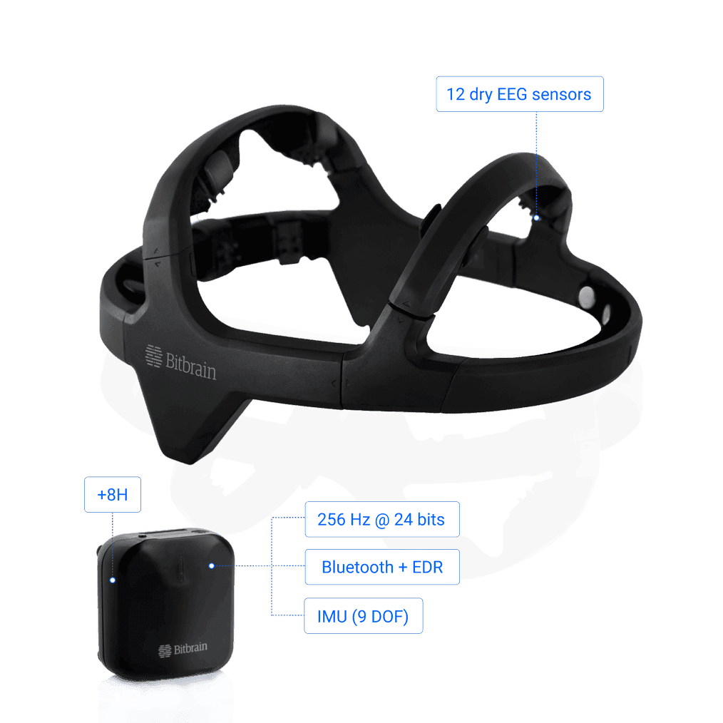 Lightweight, wearable dry-EEG with easy-to-use setup. Designed for comfortable, reliable recordings in natural environments. Wireless connectivity and microSD card storage option.